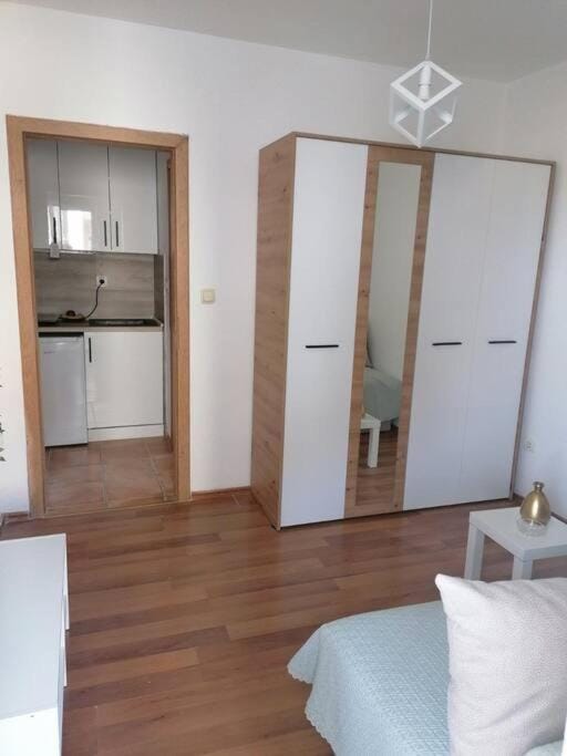 Na lepom mestu i blizu plaze . Apartman ima sopstvenu garazu . Klima interner i televizija su dostupni . Takodje opremljen je tako da je funkcionalan za zivot kao da ste u svom domu.