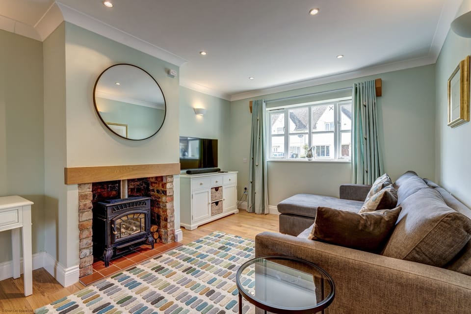- Living Room: Relax in the comfortable seating area with a sofa, easy chair, flat-screen TV, and a cosy wood-burning stove.