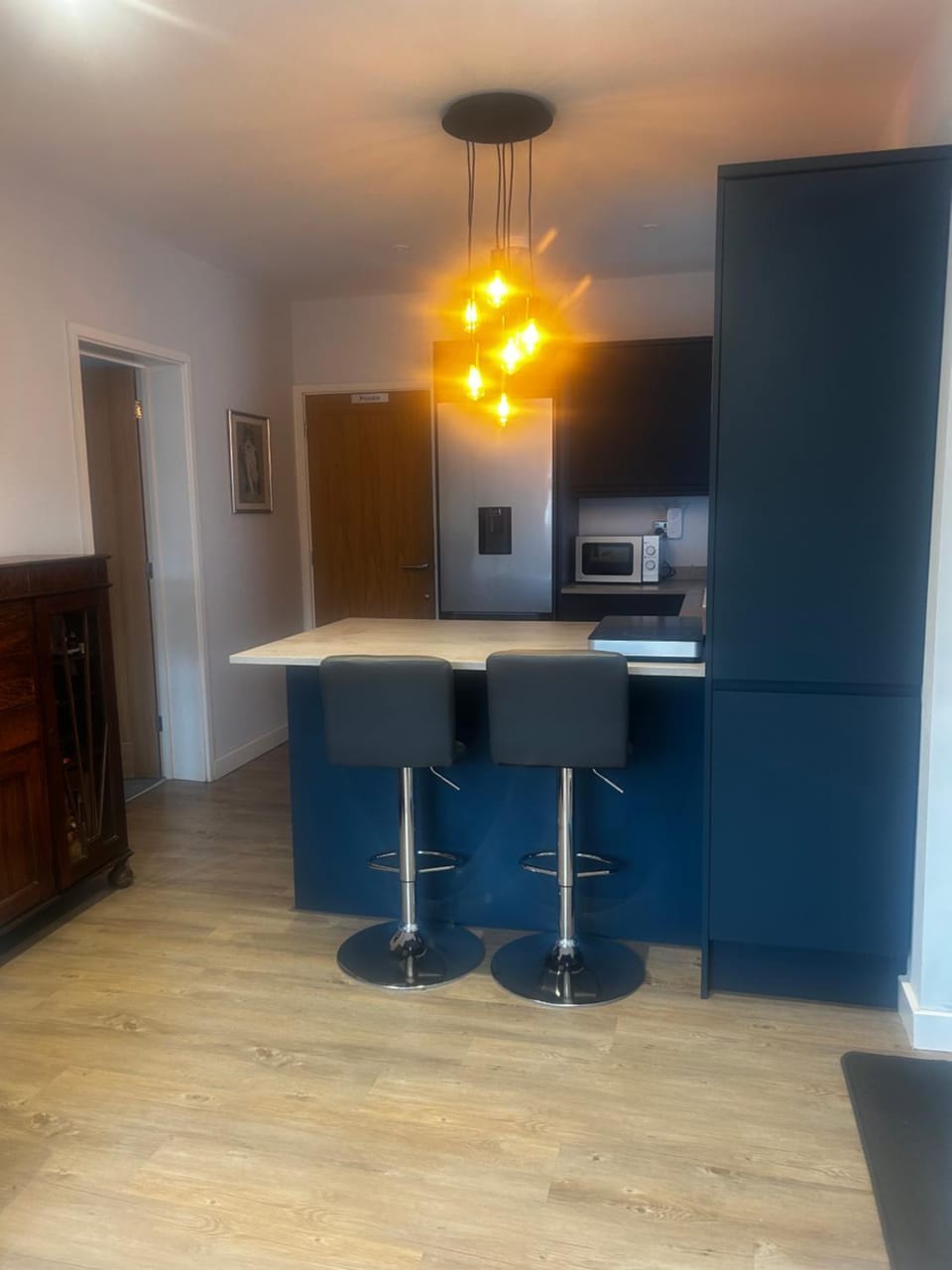 All mugs were stained except two that were either chipped or cracked. Kitchen utensils grubby, used green washing up sponge supplied, spare duvet stained and sideboard tatty and cluttered with stuff. Space has potential to be so much better. A larger bed would be great and a chair in the bedroom too. Shower room was brilliant though!