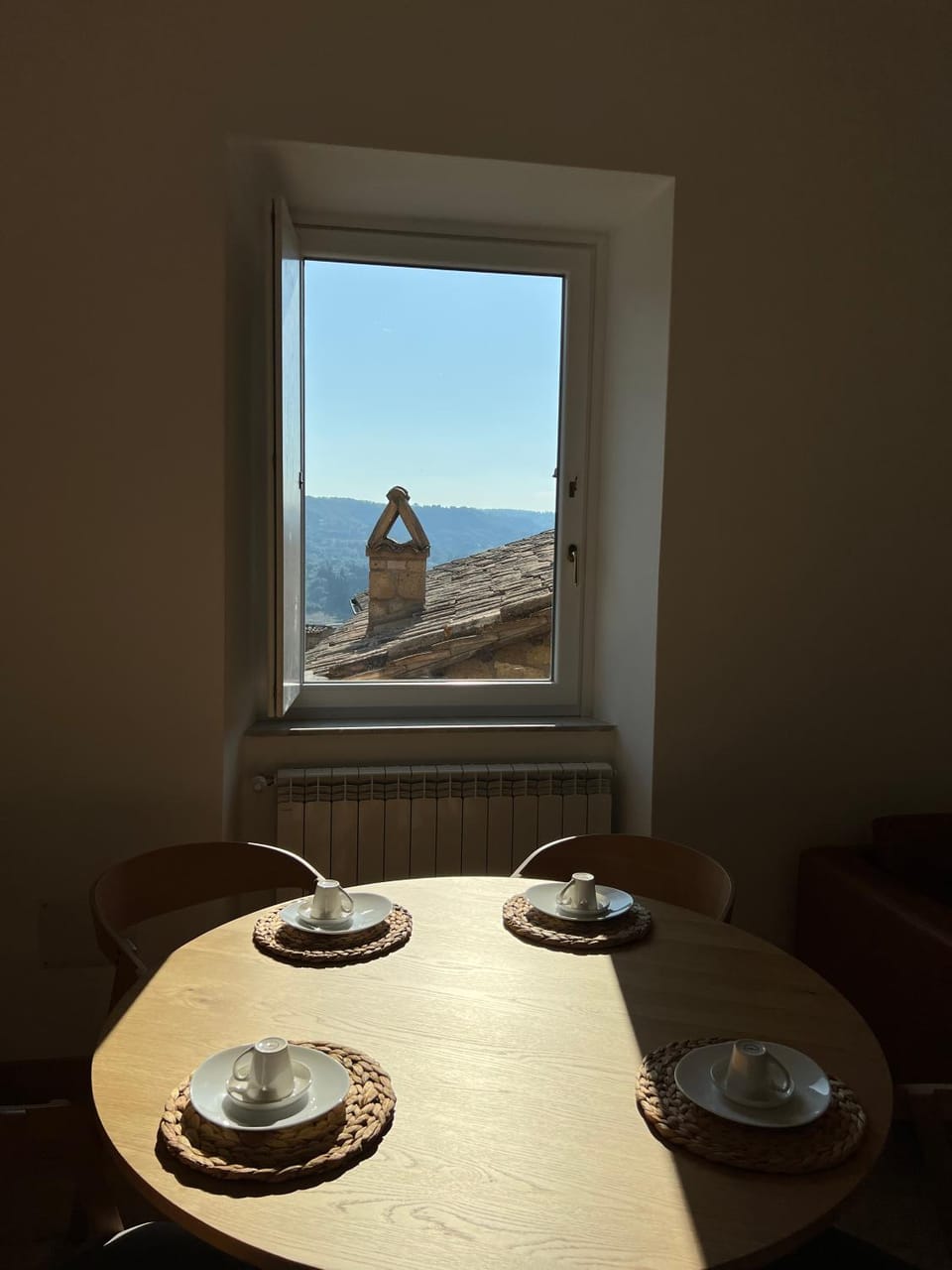 Just steps away from the center of town. It’s an elegantly restored classic apartment with spectacular views, a well-equipped kitchen, washer and great AC. Both bathrooms have excellent showers and bidets. As is typical of Orvieto, there are 19 steps up to the front door, then 23 more to the apartment so be prepared. We’ve been coming to Orvieto for 11 years so know the city well. This is one of our faves.