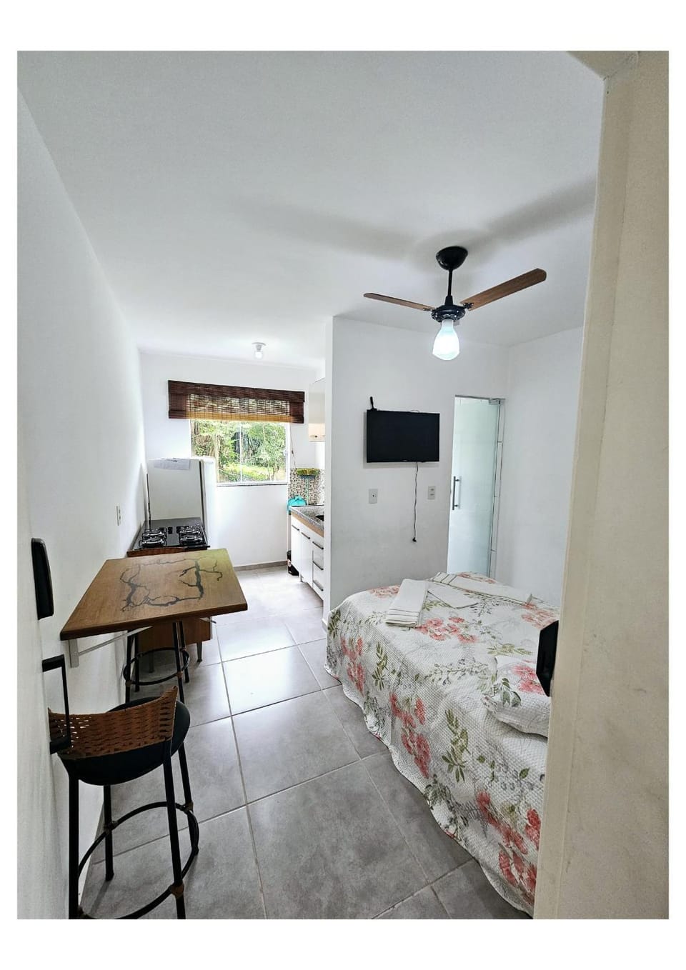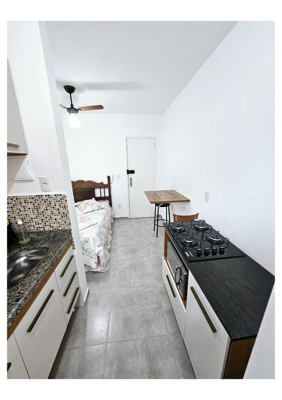 O anfitrião foi muito solícito. Mandou as instruções bem detalhadas, ficou atento a nossa hospedagem durante todo o tempo, nos deu até recomendações de passeios. O apartamento é pequeno mas cumpriu a função que queríamos, de apenas uma noite. A limpeza é um ponto de destaque, tanto o ambiente, as roupas de cama, apesar de bem simples, estavam limpas, tudo muito organizado. Conta com geladeira, fogão, pia, armários com utensílios e sanduicheira.
