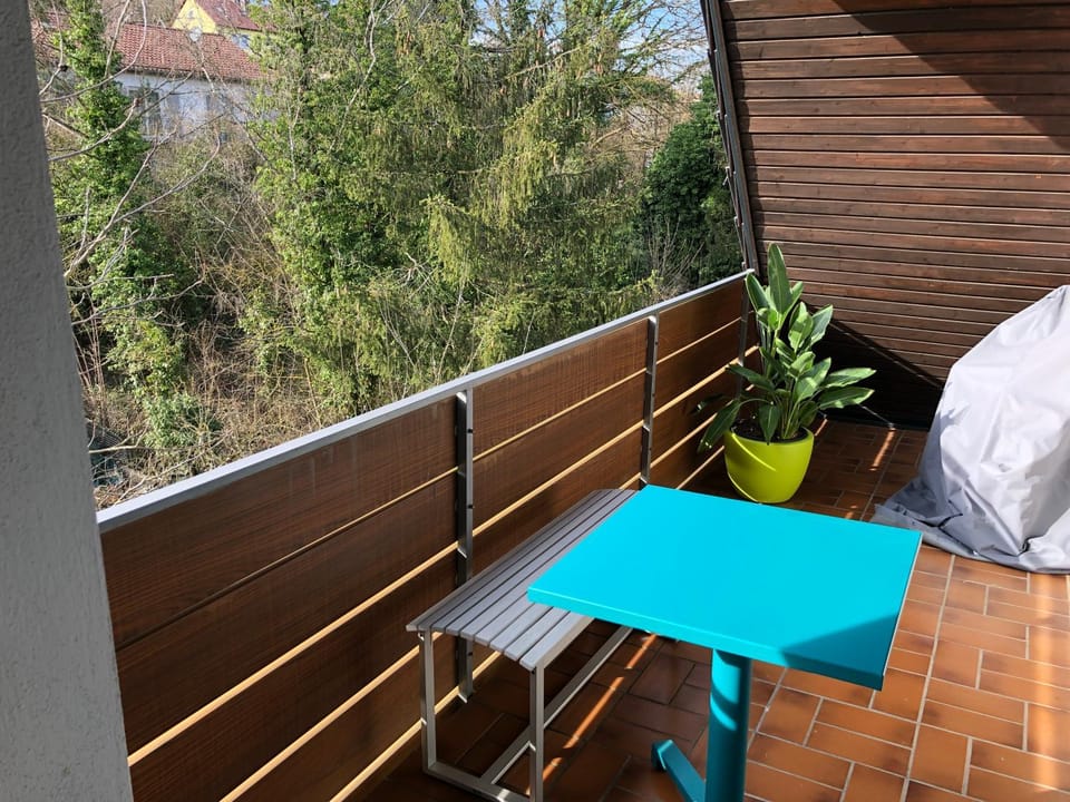 Blaues Zimmer -keine Küche- mit grossem Balkon, Bad ist ein Traum, nur 50 Schritte zum Radweg am Main