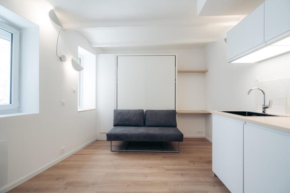 L'optimisation de l'espace (le studio est petit) pour rendre le séjour confortable et agréable. La propreté. La qualité des sanitaires. La situation au centre de Fontainebleau et le calme de l'appartement.