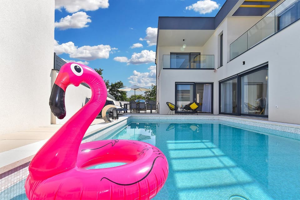 Jlo 2 mit 4 E-Bikes is a recently renovated villa in Peroj where guests can make the most of its outdoor swimming pool, garden, and barbecue facilities. This property offers access to a terrace, free private parking, and free Wifi.