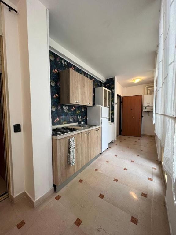 -condizionatore che fa pochissimo calore. La cucina è tipo una veranda con tante finestre e li è molto freddo e piove dentro. Inoltre la stanza ha una porta vetrata che separa la cucina e si vede TUTTO perché affaccia in un cortile interno e c'è solo una tenda per coprire, quindi la mattina entra la luce.