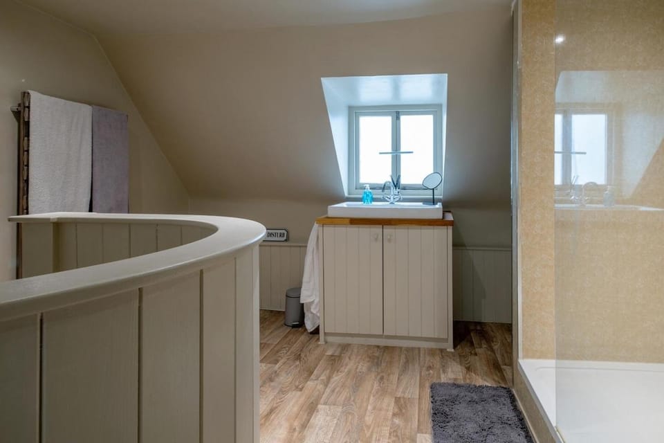 We love the bathroom in the attic space and the open living area downstairs. The property has everything you need for a short stay.