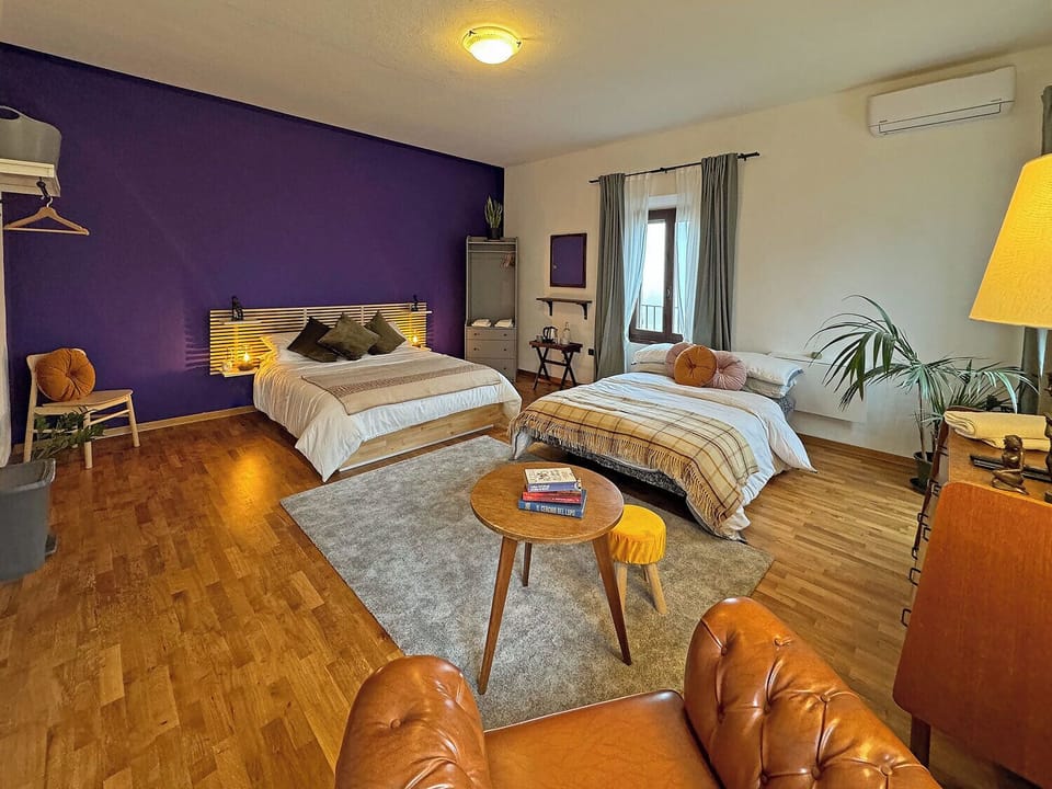 Let the unique atmosphere of this room envelop you, a place where the charm of nature blends with the exquisite taste of the black fig, protagonist in our lush garden. With its panoramic views of the surrounding countryside and garden, it offers guests an experience wrapped in serenity. The enchanting atmosphere of the room captures the essence of natural beauty, offering a cozy retreat to immerse yourself in the surrounding landscape. Two shared bathrooms.