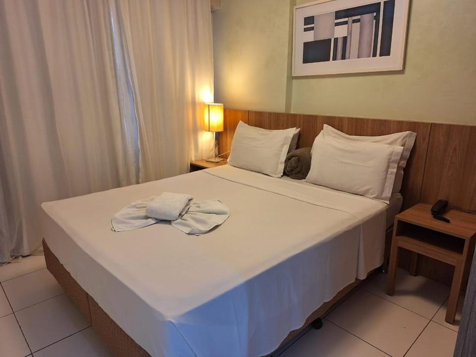 A Cama é espaçosa e confortável. A piscina e hidro do prédio são bons!