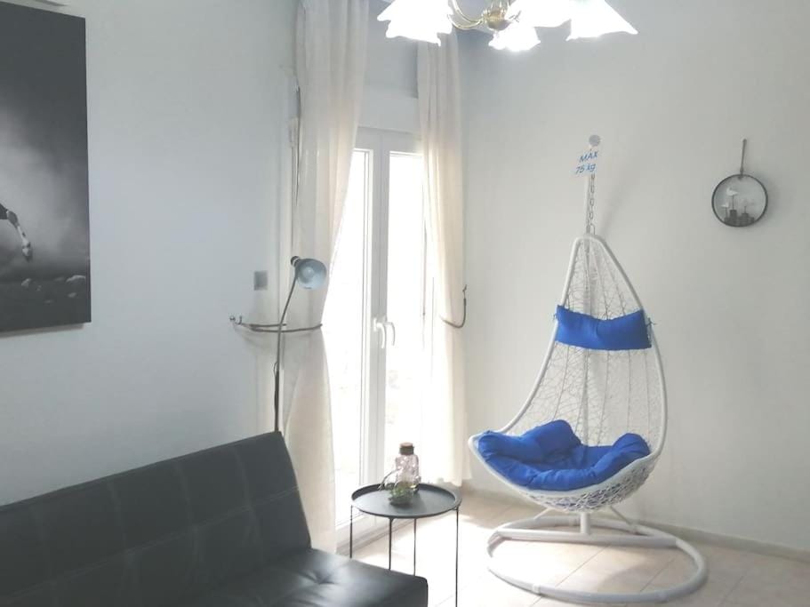 Blue swing chair apartment