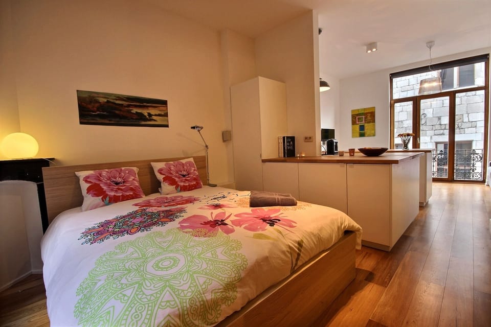 The apartment is ideally located in a typical Liège house on a pedestrian street in one of the most pleasant areas of the city: the historic heart.Here you will be a 3-minute walk from the Place du Marché, Place St Lambert and their many shops, restaurants and bars…