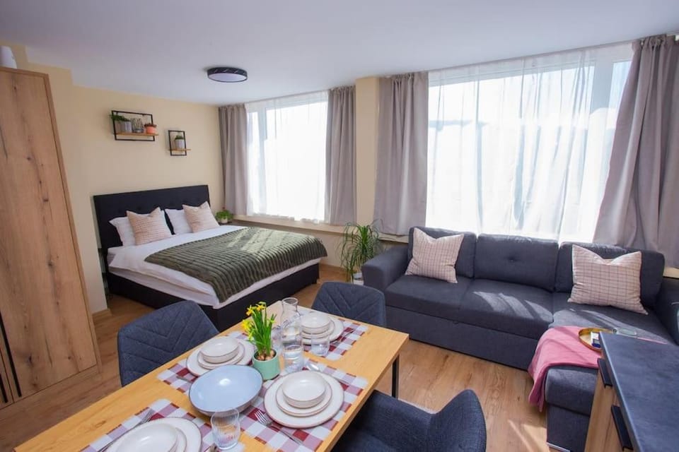 Saubere top eingerichtete Wohnung mit einem großen Badezimmer. Super Aussicht. Man kann das Busludscha Denkmal und das Shipka-Denkmal an klaren Tagen erkennen!