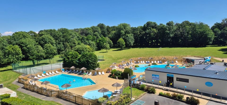 Yes, a swimming pool is available for use at Mobil Home XXL 4 chambres - Camping du Quinquis. Enjoy the water!