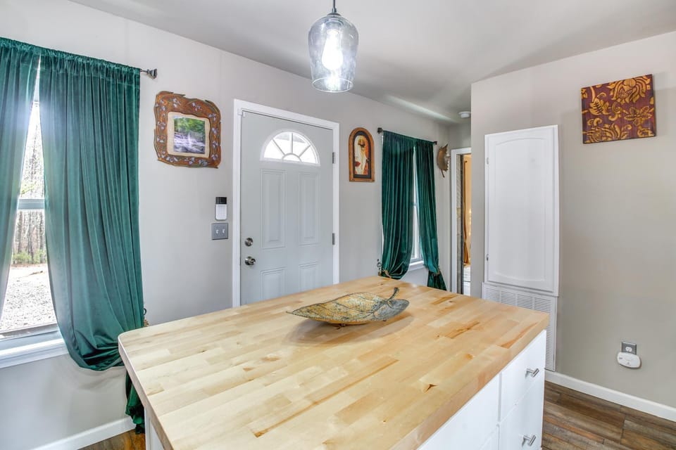 This house is adorable. I don’t think the pictures capture this well enough. Perfect for a short getaway. There were just two of us and this house was just the right size. It was clean and comfortable (love the cozy bedding). Nestled among pine trees just off the beaten path. The smell outside because of the wooded area and pines was so good! Birds chirping in the morning. I loved sitting outside!