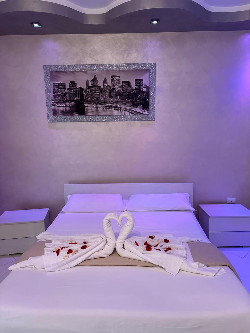 "Big clean apartment with big balcony. Big beds and master bedroom had neat colorful lighting option.
