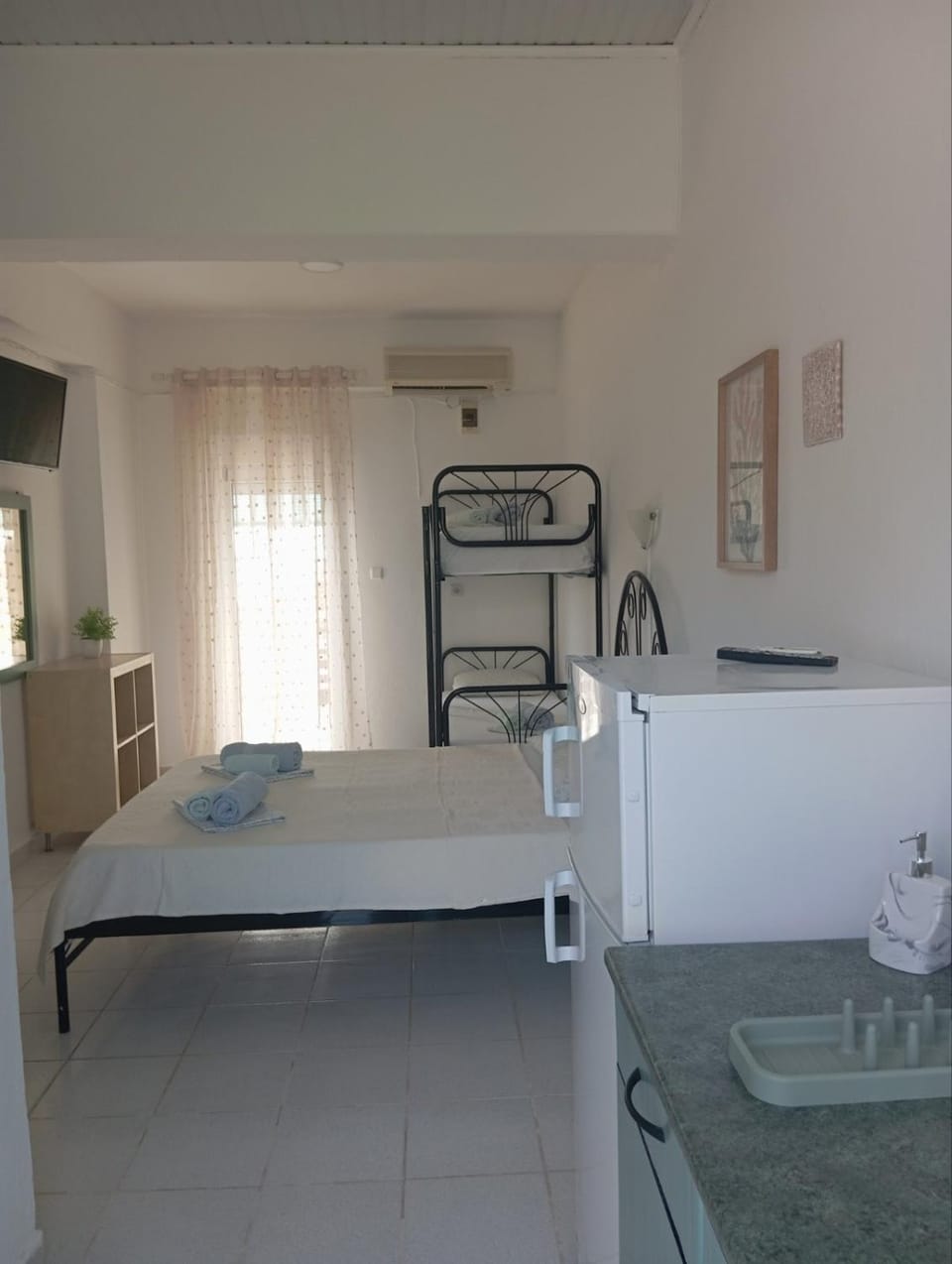 Το δωμάτιο ήταν καθαρό και άνετο και επίσης η παραλία ήταν πολύ κοντά.Το κλιματιστικό δούλεψε άψογα και είχαμε ωραία θέα στη θάλασσα καθώς και σιτες στα παράθυρα.Μακαρι να ξαναερθουμε σύντομα.