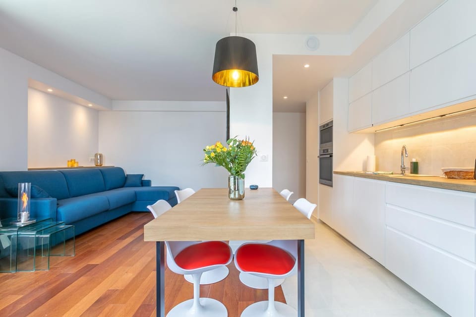 Great location near metro. Recently refurbished and very clean. Very well stocked kitchen with everything you need for a long stay.