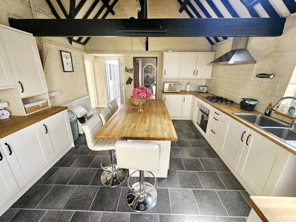 The main areas were great - kitchen and the dining and living areas. Plenty of room and nice Xmas touches. Great for entertaining our large family group. The main birthday lunch for 11 of us worked incredibly well - perfect table. Nice garden - great for our dog. Beautiful eucalyptus. Nearby Whitmoor Common was amazing for walking and perfect on a misty winter morning. The kitchen was well equipped and had there were basic herbs/spices/oil etc.