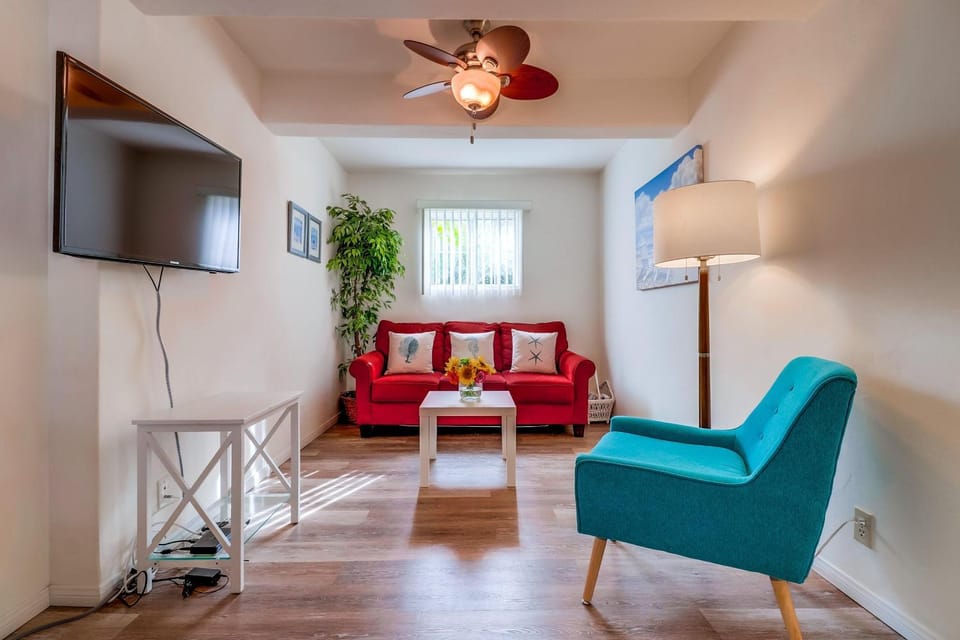The place is tiny, hard to fit a surfboard inside... and the couch has a soft sink landing to it. Other than that, it was perfect place to land in La Jolla.