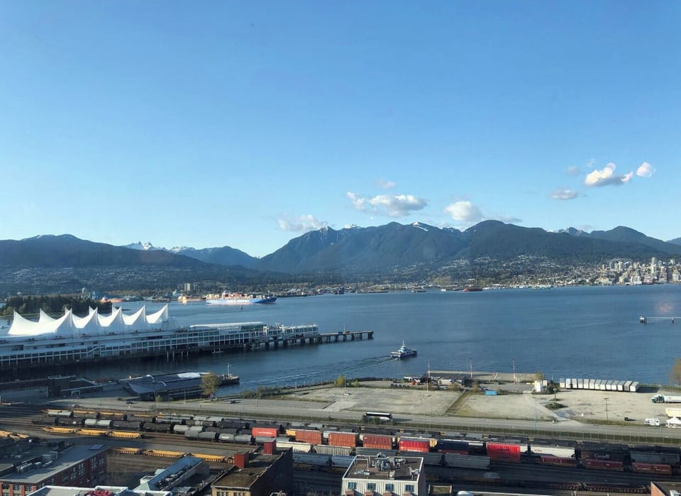 This corner unit is fully-furnished, 1020SqFt, is located in the heart of Gastown Vancouver. High floor with fantastic views of the North Shore mountains, Burrard Inlet and Vancity. 10 min walk to Vancouver Convention Center & Cruise Ship Terminal. ** Recently updated with new floors, new sofa bed and new kitchen countertops. ** Two portable air conditioners are available in summer, 1 is in the master bedroom, the other is in the 2nd bedroom. Additionally, there are 2 tower fans available in the unit. ** We understand the importance of cleanliness, and we make it our top priority to deliver an exceptionally clean apartment.
