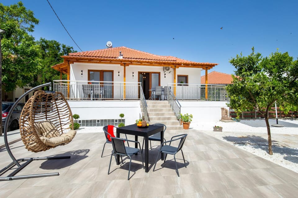 We had a great vacation at Maison Centrale. Eva, the host, was very kind and welcoming. As this was our fist time in Thassos, she helped us with great advice for beaches and tavernas. We were welcomed with fresh fruits and water and we also received a gift when we left. The house is newly renovated, the space is enough for a family of 5 (2 adults and 3 children). The backyard is pretty big, it has garden toys, an outside table for 6 where you can play games in the evening or have dinner and a barbecue. The neighborhood is quiet.