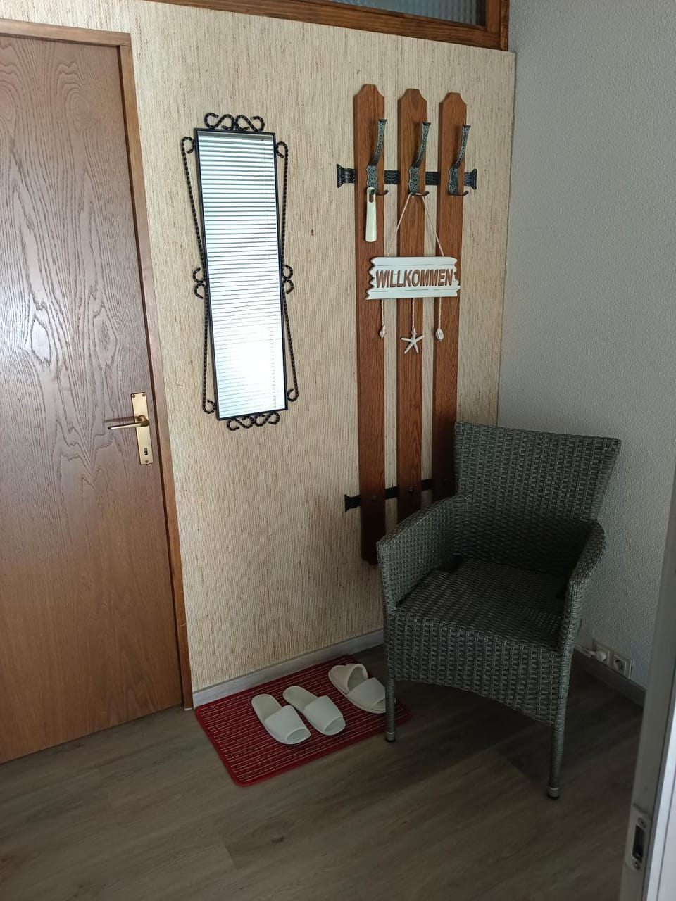 Die Ausstattung/Möblierung ist nicht neu, aber völlig in Ordnung und ausreichend und alles war sehr sauber. Die Raumaufteilung ist ungewöhnlich, man kommt ins Bad und in die Kochnische nur über das Schlafzimmer (und Teile dessen, was man sonst in der Küche erwartet, wie ein Kühlschrank) sind im Wohnzimmer, aber zumindest wenn man nur zu zweit dort ist, macht das nichts. Es war sehr ruhig, und trotz hoher Außentemperaturen innen schön kühl. Der allgemeine Außenbereich der Anlage mit Seezugang ist eben wirklich super!