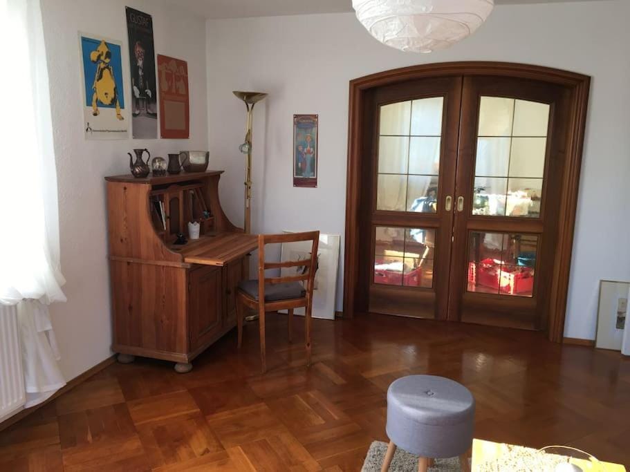 Die Wohnung ist wunderbar groß, warm und voller Charm. Es gibt einfach viel Platz in allen Räumen. Es fehlte nichts. Und wir durften unsere Haustiere mitbringen. Wir fühlten uns wie zu Hause, von der ersten Nacht an haben wir super geschlafen, die Energien stimmten einfach. Der Eigentümer super nett und unkompliziert. Die Lage am Waldrand, nur die Treppe neben der Klinik hochlaufen und schon ist man im Wald, einfach Klasse. Vielen Dank!!!