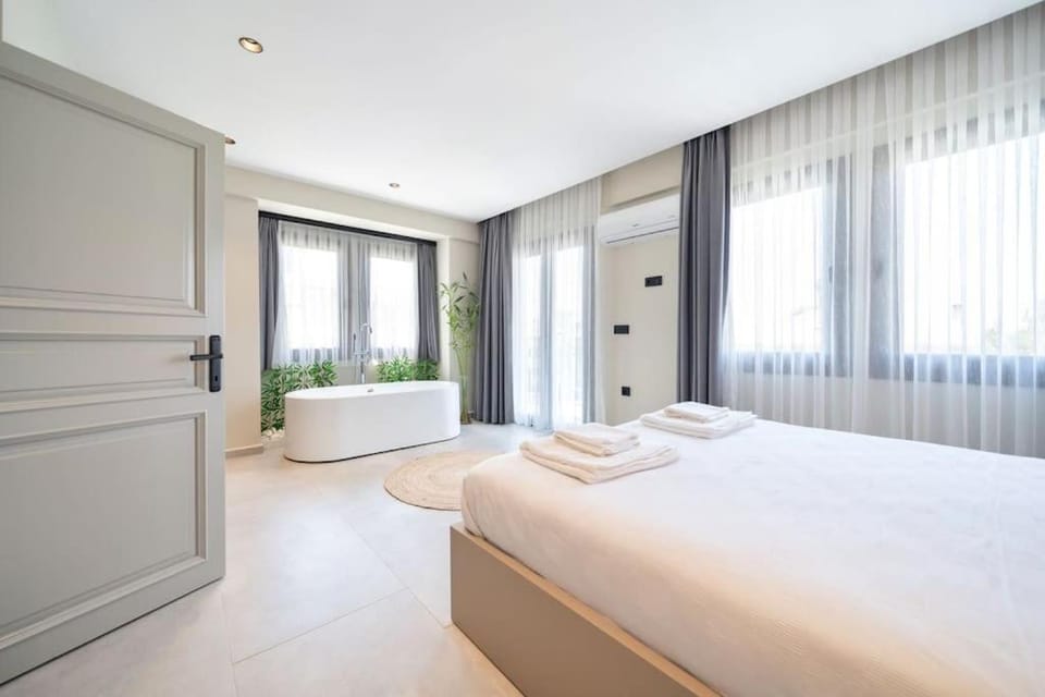 6.5 miles from Ece Saray Marina in Fethiye, Havuzlu korunaklı özel villa features accommodations with access to a hot tub. This property offers access to a balcony, free private parking, and free Wifi.
