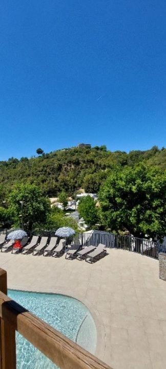 Yes, a swimming pool is available for use at Mobil home Soleil. Enjoy the water!
