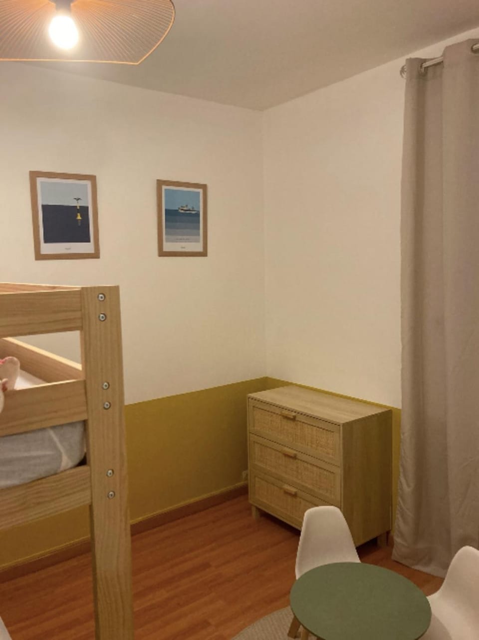 La chambre avec grand lit un peu exiguë alors que l'autre chambre est très grande mais bien compris que si 3 enfants cette disposition est nécessaire. A oui quelques vrais bols seraient appréciés .