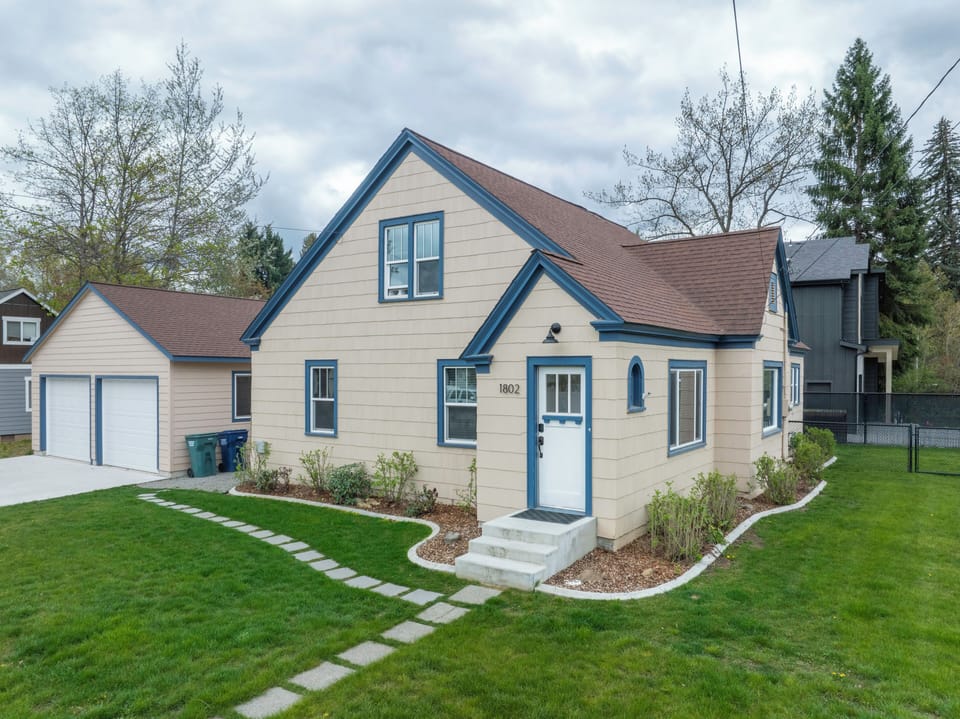 Ideal for hosting unforgettable gatherings! Featuring 4 spacious bedrooms, including 2 luxurious King beds, a cozy Queen size bed, and a bunk room with 4 beds for added fun. Enjoy the expansive living space, perfect for entertaining, and head outside to the inviting patio for BBQs and fireside chats. With downtown just minutes away, adventure awaits at every turn. Relax in the fully fenced backyard, and whip up culinary delights in the fully equipped kitchen. Welcome to your perfect retreat! The kitchen, living, dining, 2 bedrooms (one King and one Queen), 1 full bath and laundry are all on the main floor. Upstairs you'll find 2 more large bedrooms. One with a King size bed and another with 2 bunks. The bunks have a twin on top and a full on the bottom. Also, upstairs is an area for reading or working and there is also a built in desk in the bunk room. The ceilings upstairs are tall. The house has forced air A/C as well window A/C upstairs for extra cooling in the summer. The backyard is fully fenced. You'll have the entire house and yard to yourself. Enjoy.