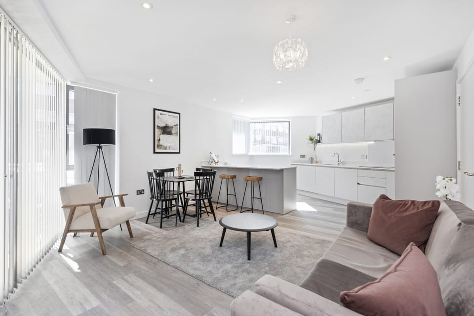 It is a stunningly designed development with beautifully crafted apartments boasting open-plan living areas, which provide ample space for a stay filled with comfort and a private terrace to enjoy some fresh air. There is a modern kitchen and bathroom with all the necessary amenities to feel at home no matter the length of stay. It comes equipped with super-fast WiFi, smart TV with all the streaming services you can ever dream of. You can enjoy everything London has to offer from this beautiful apartment.