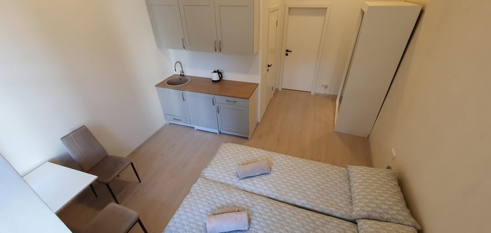 Great location. Comfortable room. Everything you need is there for a nice shower, good sleep and a meal. Even parking! Kitchen is equipped with..."