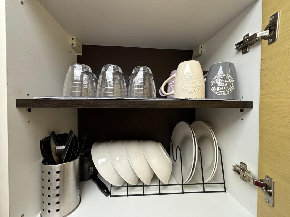 "The place is nice and clean. You have nice dishes, cups, forks, spoons...knifes, kitchen paper, soup everywhere and all needed for keep your space clean and tidy. Landlord is commiing personally to gi..."