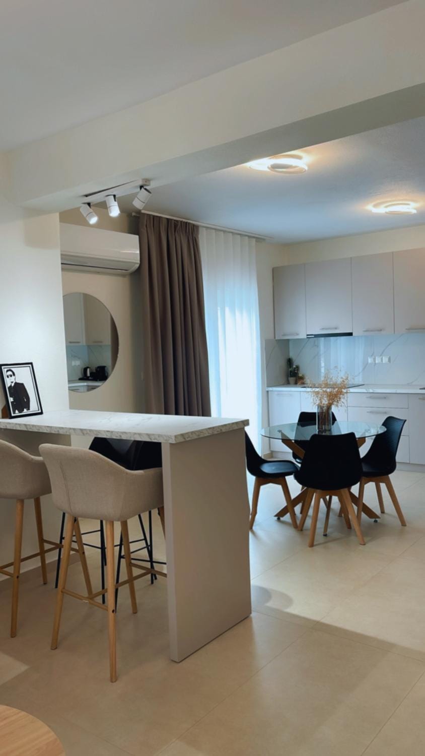 Yeni ve temiz bir daire , sizi çok güzel bir aile karşılıyor , havluların günlük değişimi , modern ve yeni ev dekorasyonu , çarşıya , kafelere çok yakın , hemen yanında akşam açılan klasik taverna var , sokakta servis yapılan çok güzel mezeleri olan enerjisi güzel bir yer, aile ortamı için ideal blr yer