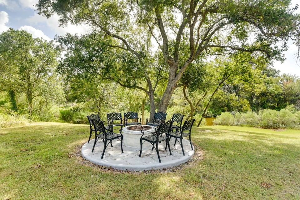 Discover the perfect destination for your next family gathering at this 5-bedroom, 5.5-bath vacation rental in Hitchcock. With its spacious layout, this ideal home offers plenty of room for everyone to relax and enjoy as a gentle breeze blows through the Crepe myrtles from the bayou. Explore attractions such as Moody Gardens and Kemah Boardwalk or stay and play at the private pool. Whether you're seeking a family reunion or a peaceful retreat, this house is sure to make your stay unforgettable. -- THE PROPERTY -- 4,424 Sq Ft | Private 4-Acre Property | Family-Friendly Home | Seasonal Indoor Pool Bedroom 1: King Bed | Bedroom 2: King Bed | Bedroom 3: King Bed | Bedroom 4: Queen Bed | Bedroom 5: 2 Twin Bunk Beds | Game Room: 3 Twin Futons | Additional Sleeping: Queen Air Mattress, Crib INDOOR LIVING: Smart TVs, group-friendly dining table, game room w/ foosball & pool table, private indoor pool (3’-12’, not heated, open summer-fall), dining & living areas OUTDOOR LIVING: 2 fire pits w/ seating, large patio w/ outdoor dining area & umbrella, huge unfenced yard, bayou views, spacious tree-lined property KITCHEN: Cooking basics, dishwasher, coffee maker, stove/oven, refrigerator, microwave, dishware & flatware, spices GENERAL: Free WiFi, keyless entry, complimentary toiletries, linens & towels, in-unit washer & dryer, central heating & air conditioning, laundry detergent, hair dryer, trash bags & paper towels FAQ: 8 exterior security cameras (facing out), step-free access PARKING: Driveway (10 vehicles), RV/trailer parking available on-site -- THE LOCATION -- AREA ATTRACTIONS: Galveston County Fair & Rodeo (2 miles), Space Center Houston (17 miles), Kemah Boardwalk (19 miles) SAND & SUN: Tiki Island Boat Ramp (9 miles), Texas City Dike (11 miles), Galveston Beach (15 miles), El Jardin Beach (24 miles), Galveston Island State Park (24 miles) GALVESTON HOTSPOTS (~16 miles): Schlitterbahn Waterpark, Moody Gardens, Galveston Island Historic Pleasure Pier, Galveston Seawall AIRPORTS: William P. Hobby Airport (27 miles), George Bush Intercontinental Airport (57 miles) -- REST EASY WITH US -- Evolve makes it easy to find and book properties you'll never want to leave. You can relax knowing that our properties will always be ready for you and that we'll answer the phone 24/7. Even better, if anything is off about your stay, we'll make it right. You can count on our homes and our people to make you feel welcome — because we know what vacation means to you. -- POLICIES -- - No smoking - No pets allowed - No events, parties, or large gatherings - Additional fees and taxes may apply - Photo ID may be required upon check-in - NOTE: Your safety matters. This property features 8 security cameras. These cameras are outward facing and do not look into any interior spaces. The cameras are located on the garage, on the front of the home, on either side of the home, on the left side of the home, on the back of the home, and near the pool area. They face the front entry to the home, the back entry, the perimeter of the home, the bayou, the patio, and the courtyard. These cameras actively record video and audio when motion is detected and will be turned on during your stay - NOTE: This property sleeps 15 guests in 8 beds and 3 futons, with room for 17 total by using the air mattress