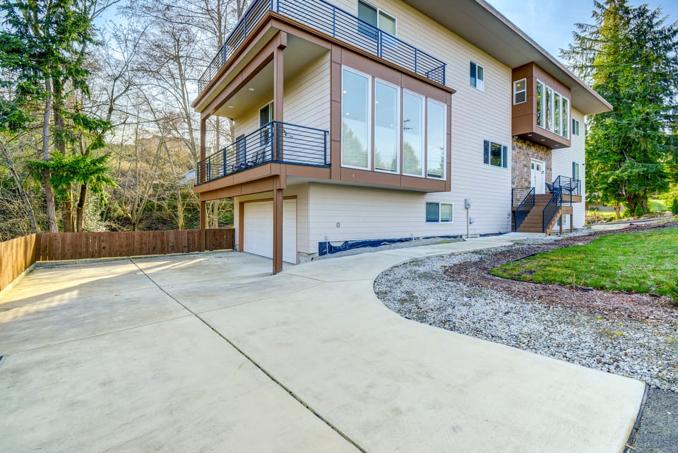 Boasting a spacious interior, a stunning gourmet kitchen, and an unbeatable location just down the road from Puget Sound, this 4-bedroom, 3-bath vacation rental home is the perfect place to kick off your next trip to Federal Way! Get your steps in and walk to Redondo Beach Boardwalk or take the 22-mile trip into downtown Seattle for FIFA World Cup festivities at Lumen Field. After, grab a glass of wine and head up to the private balcony to enjoy Puget Sound views.