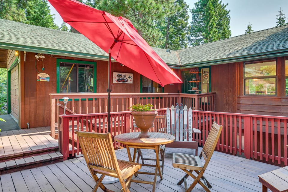 Enjoy year-round adventures when you retreat to this serene vacation rental in Tahoe Vista, CA. Hit Northstar California Resort's ski slopes in the winter or soak up the sun at Kings Beach in the summer. Later, return to the 3-bedroom, 2.5-bathroom property and dine on a deck of your choice while taking in lush views of the surrounding woods. Staying inside? This home also features a cozy fireplace and a well-equipped office, perfect for remote work!