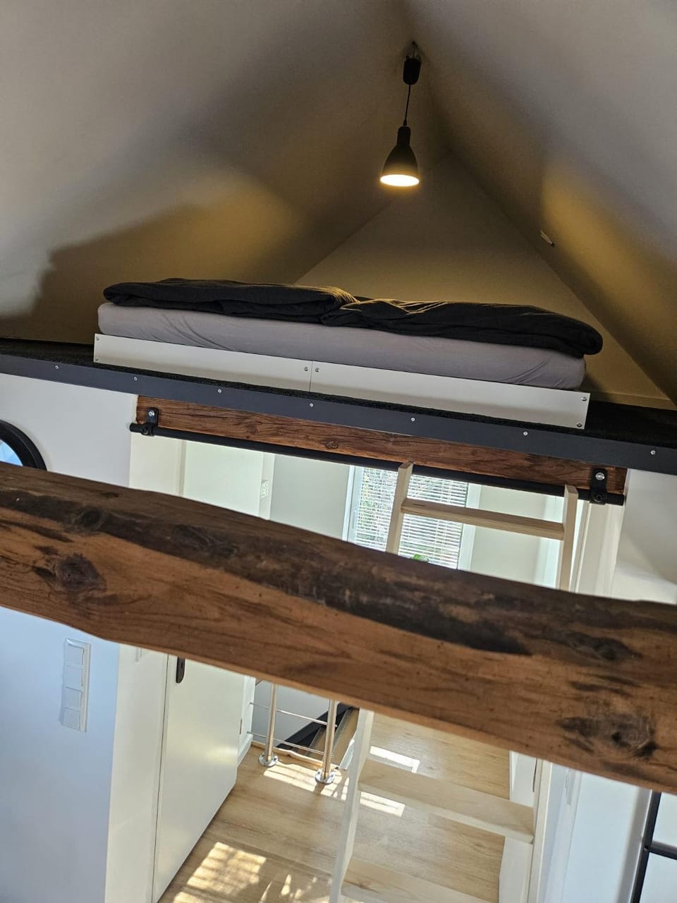 Very well-designed attic loft. The layout and furniture are unique, with the bed placed on a mezzanine and accessible by a ladder. Everything was well arranged, with a nice kitchen and a large bathroom with a separate shower.