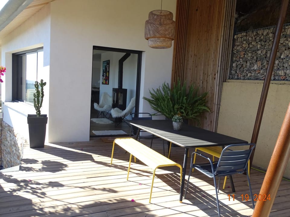 La vue est exceptionnelle, la maison est très belle, calme, pratique et fonctionnelle. Le lever et le coucher de soleil.