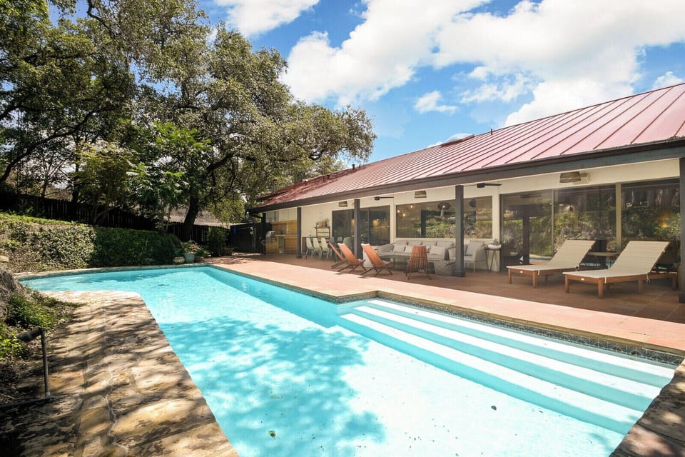 The home is perfect for large families or groups, with indoor and outdoor dining areas and cozy living spaces. Huge entertainment area features large flat-screen TV, wet bar with wine fridge, 3 sitting/living areas, and a game room. Designer kitchen features high-end appliances with every tool you need to cook a gourmet meal at home. The home also features a large private office space with speedy wi-fi.