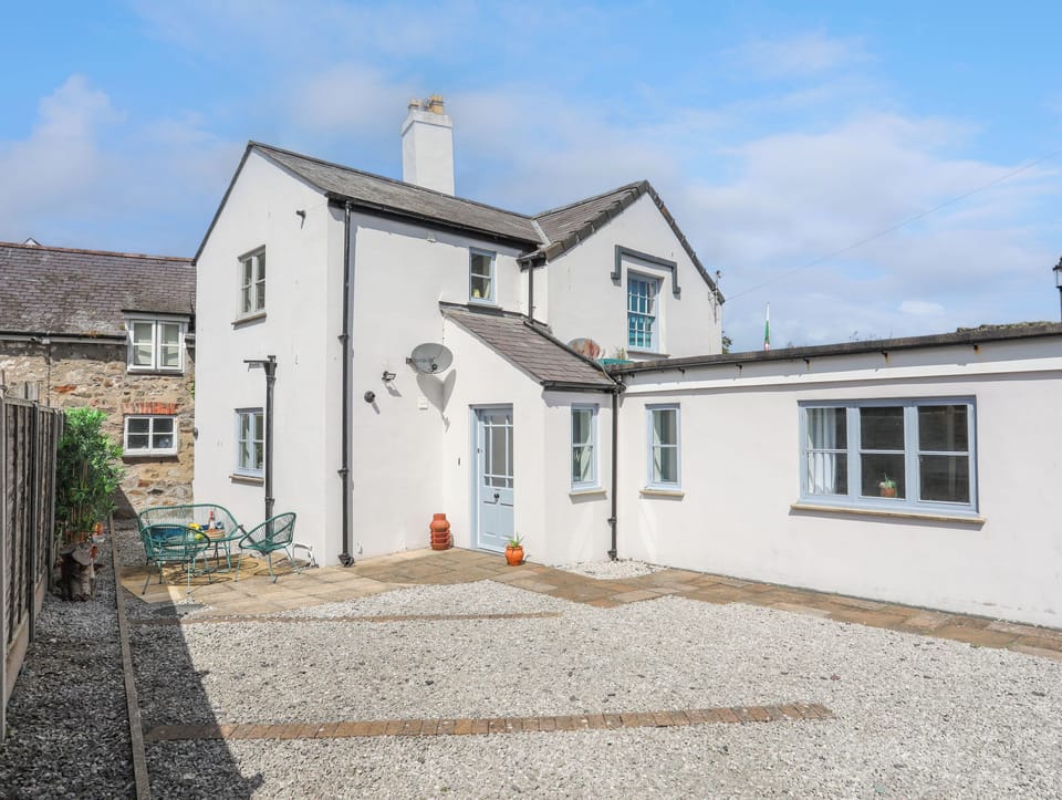 Tyn y Gongl Cottage consists of a kitchen with electric oven and hob, microwave, fridge, freezer, washing machine, dishwasher, and breakfast table with seating for four guests, and a living/dining room with Smart TV with Netflix and Amazon, and dining table with seating for four guests. The bedrooms consist of a king-size with en-suite walk-in shower, and twin, along with a bathroom. Outside, there is an enclosed front courtyard with gravel, patio, and furniture, and private, off-road parking for two cars. Two well-behaved pets welcome. Sorry, no smoking. WiFi, fuel, power, bed linen, and towels inc. in rent. Escape to Tyn y Gongl Cottage. Note: There is a step down into the twin bedroom. Note: There is a Good Housekeeping Bond of 250 GBP. Note: There is car parking available for two small cars (VW Golf or smaller) in a private courtyard; reverse parking into the spot is required. Alternative nearby parking is available on The Green on the seafront at your own expense.