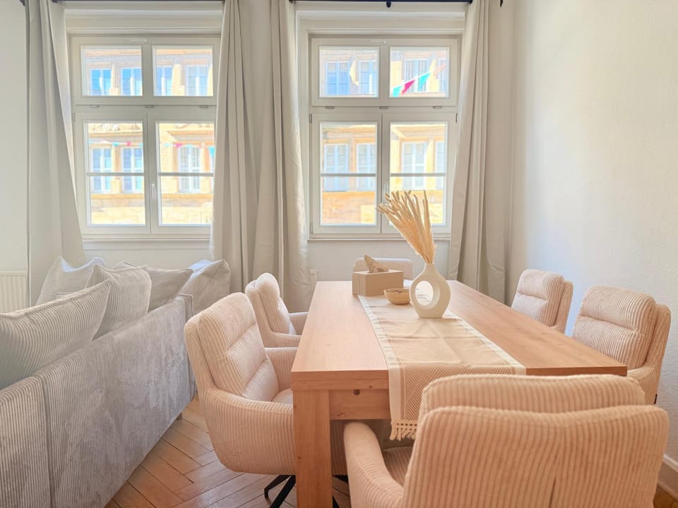 FEWO mitten im Herzen der Altstadt von Coburg, dennoch ruhig gelegen. Fußläufig zu allen Sehenswürdigkeiten der Stadt. Die FEWO ist mit über 120qm sehr groß und bietet sehr viel Platz. Zudem ein dicker Pluspunkt, dass unser Haustier mit durfte.