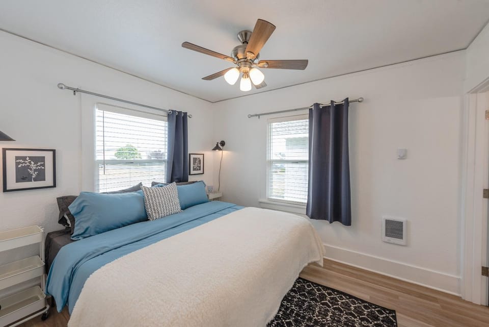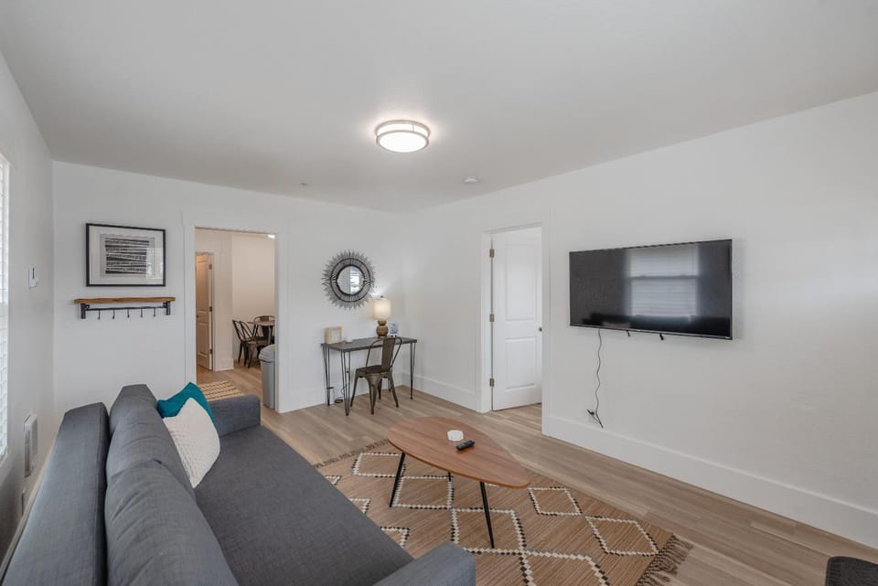 We loved that the house was dog friendly and on a quiet street that allowed us to walk our dogs around the neighborhood. We liked that the location was convenient to Safeway and Fred Meyer and other downtown businesses. The beds were comfortable, the kitchen was stocked with basics for eating and cooking and it was nice to have a washer and dryer. Also there were several streaming options on the tv.