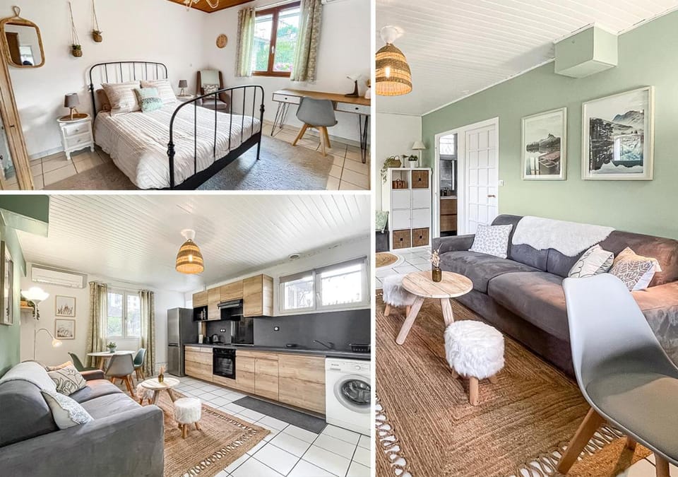 Petit coin cocooning moderne tant au niveau de la décoration, la literie est parfaite, la clim est un énorme plus , l'accès au jardin est génial !