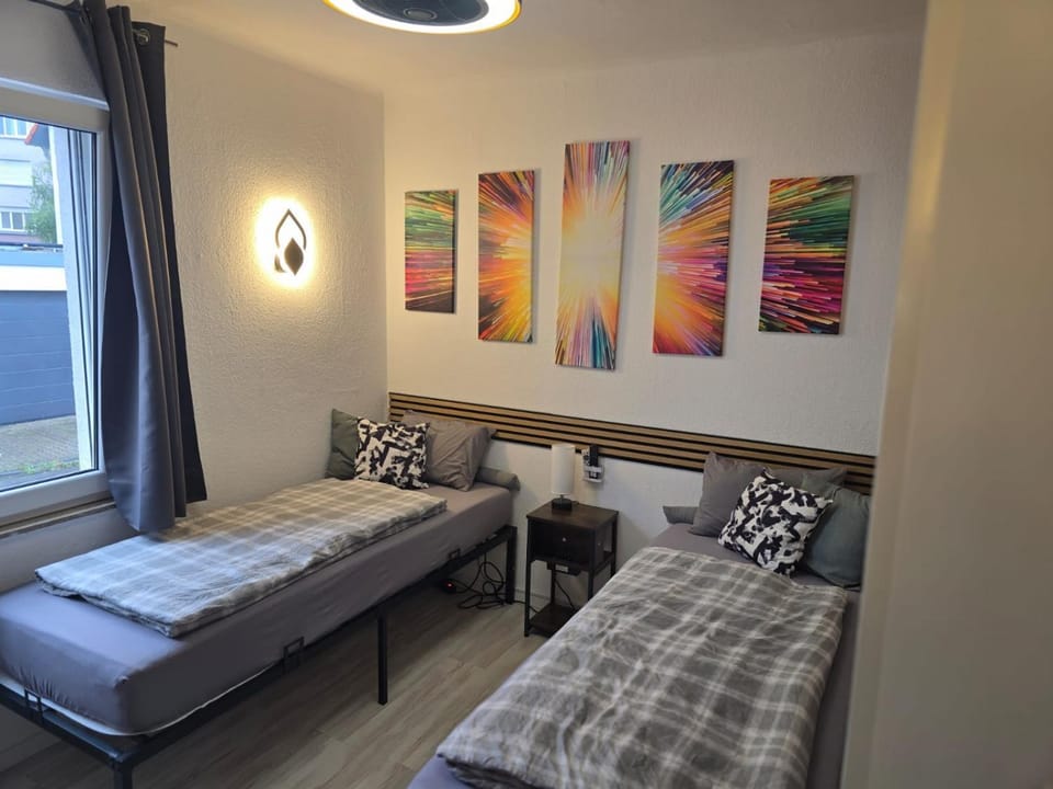 Günstiges Zimmer in Heidelberg-Kirchheim, das exakt den Fotos entspricht. Sauber und modern. Wie auf den Bildern zu sehen: zwei Einzelbetten, die aber zusammengeschoben werden könnten.