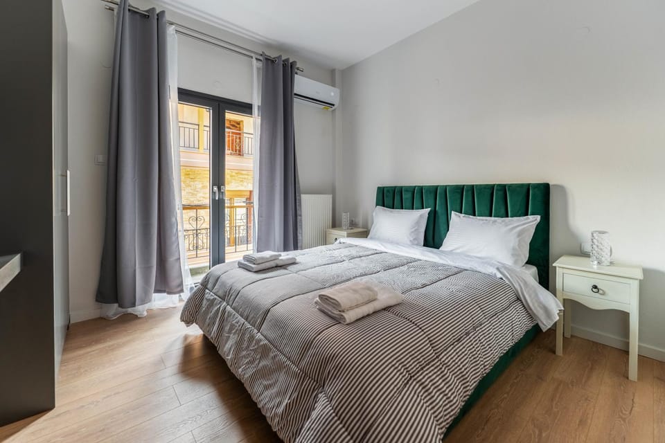 Good location in Litochoro. We found a place to park in the same block. Apartment is refurnished with air conditioning only in the bedrooms. But even in August, the breeze of the mountain was enough to keep the place cool during the day.