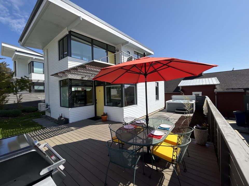 After a day of exploring or just because, slip into the luxurious hot tub and let the warm water melt your stress away. Then, gather around the outdoor seating area to share a toast and savor this dream vacation with family or friends.