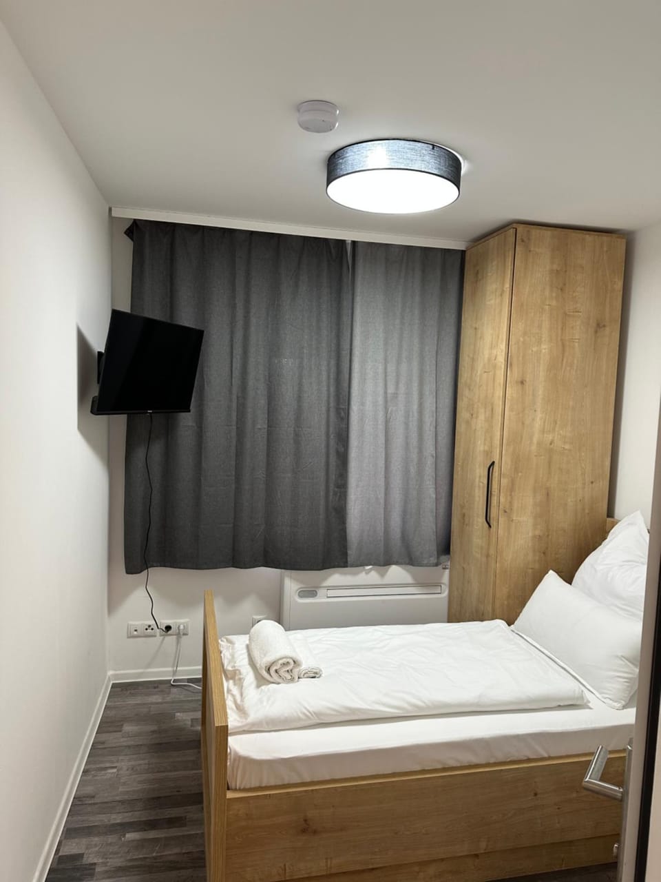 Außer im Schrank (2 Drahtbügel) keine Aufhängemöglichkeiten (Haken/Garderobe). Duschbad: keine Ablage, keine Haken/Handtuchstangen, kein Zahnbecher.