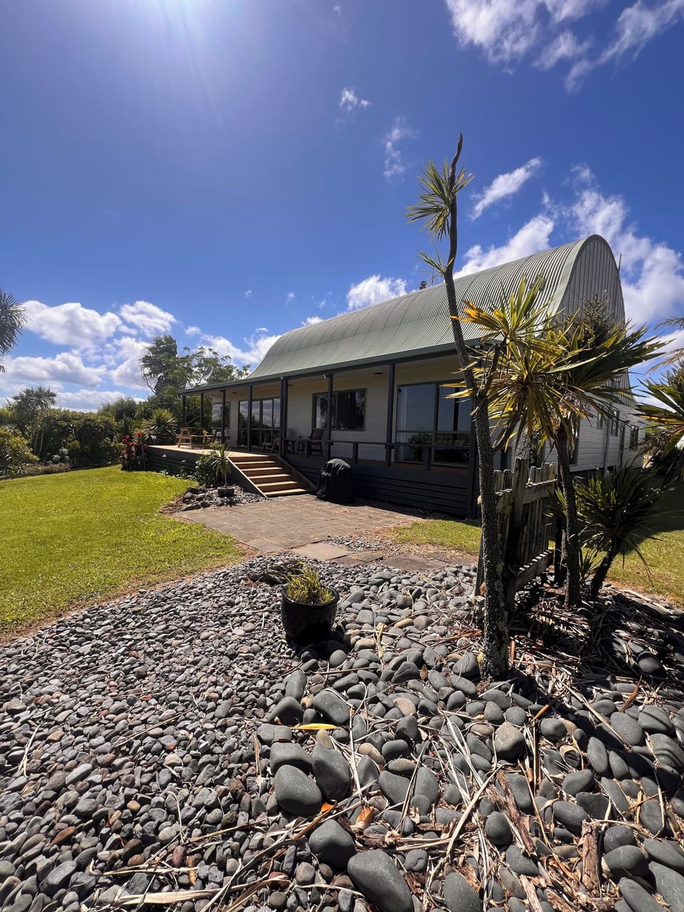Set amongst a rural backdrop but only minutes from the seashore stands this spacious character filled barnstyle holiday home. Perfectly perched along the hills of Cable Bay with the most outstanding views is this private, beautifully landscaped spaciously built home. The indoor outdoor living taking advantage of the spectacular view out across the hills to the beautiful Bays beyond. With two levels the lower level for the adults and the top for the kids on the mezzanine floor there is plenty of space to hang for everyone. Bring your boat with the ample space for parking. Heat up the barbi. throw on the steak and snarlers over a cold bevy in the evening while the kids play on the lawn. This unique barn styled holiday home will be the place your and yours will want to return to every break you can. Whether you'd like to eat out or in the local cafes, restaurants or shopping is but a stone throw away. Book this today do not miss out on this one.
