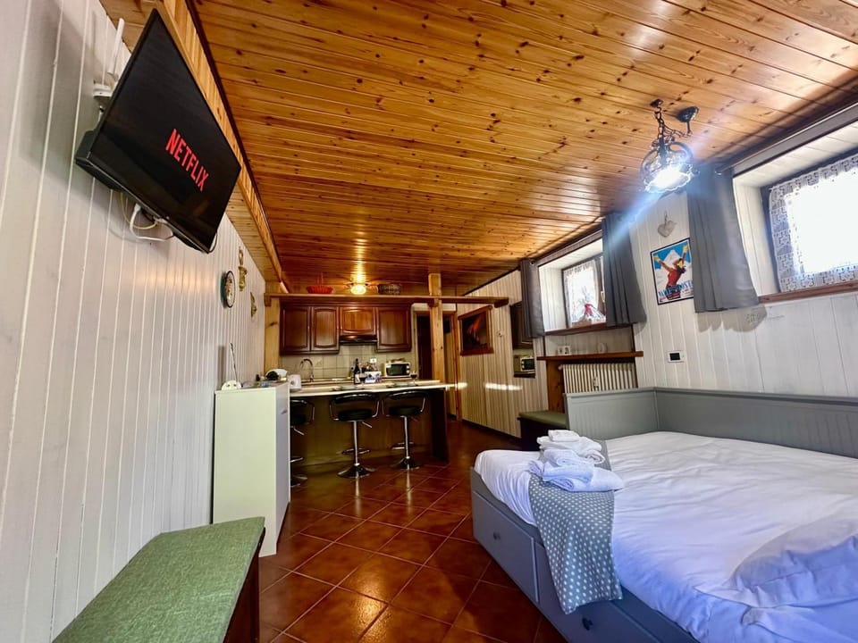 Fully equipped studio apartment, close to parking, excellent location: 2 minutes drive to the Valtournenche cable car or 12 minutes to Bruel Cervinia. On the street good restaurants, bars and markets shops. Highly recommended!